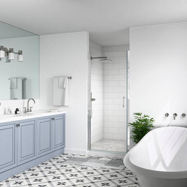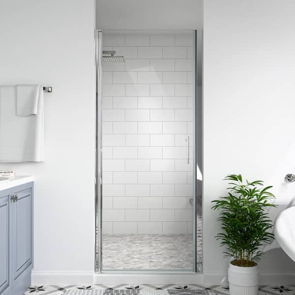 32 to 33-3/8 in. W x 72 in. H Pivot Semi-Frameless Shower Door in Chrome Finish with SGCC Certified Clear Glass