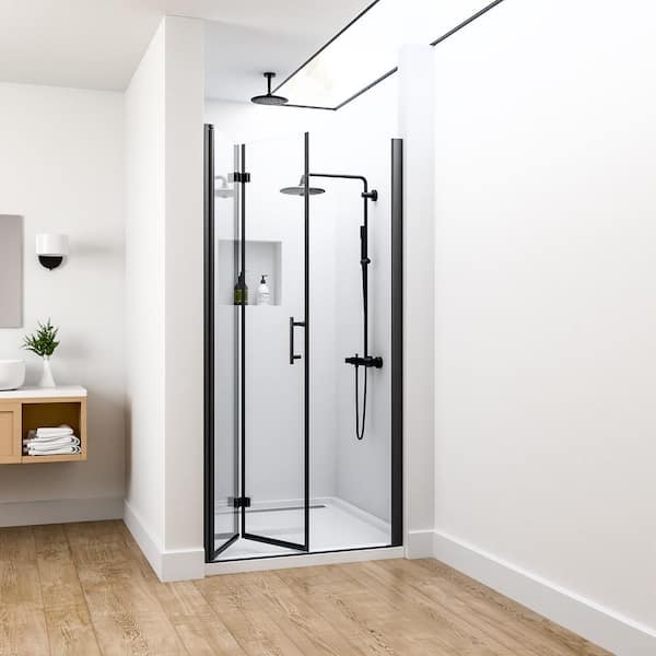 36 to 37-3/8 in. W x 72 in. H Bi-Fold Semi-Frameless Shower Door in Matte Black Finish with SGCC Certified Clear Glass