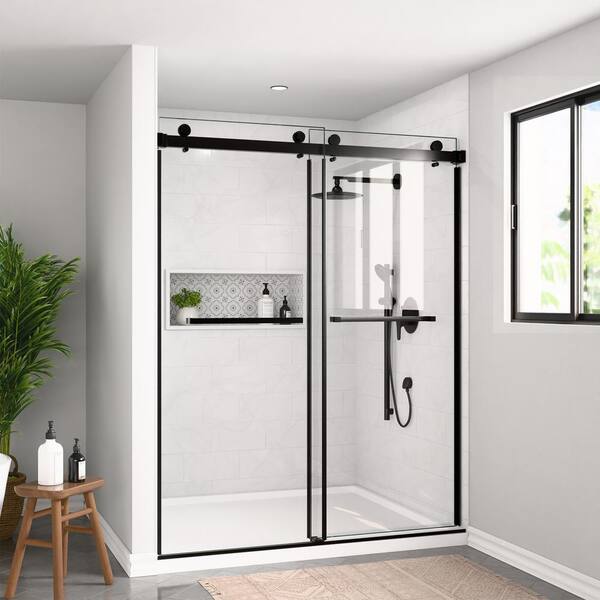 56-60 in. W x 80 in. H Double Sliding Frameless Shower Door in Matte Black with Smooth Sliding and 3/8 in. Clear Glass