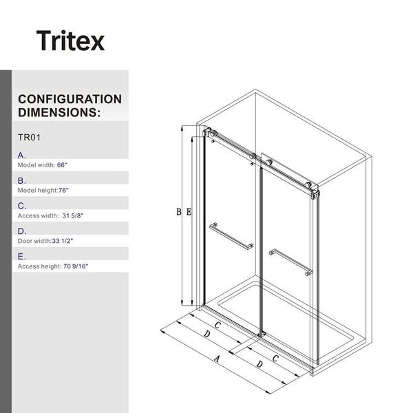 62-66 in. W x 76 in. H Double Sliding Frameless Shower Door in Space Gray with Smooth Sliding and 3/8 in. Clear Glass