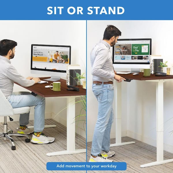 Electrical 55 in. Rectangular Brown MDF Desk with Anti-Collision Ultra Quiet Dual Motor 2-Stage Telescoping Legs