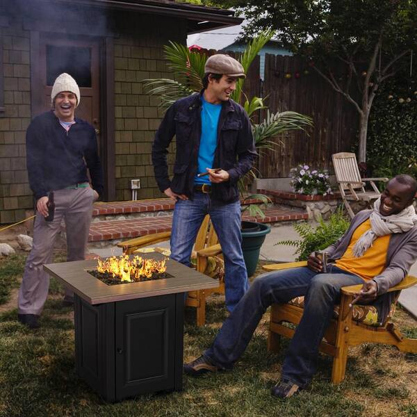 28 in. Gas Fire Pit Table 50000 BTU Propane Fire Pit Table with Lid and Lava Rocks Flame-Out Protection Wood Grain Black