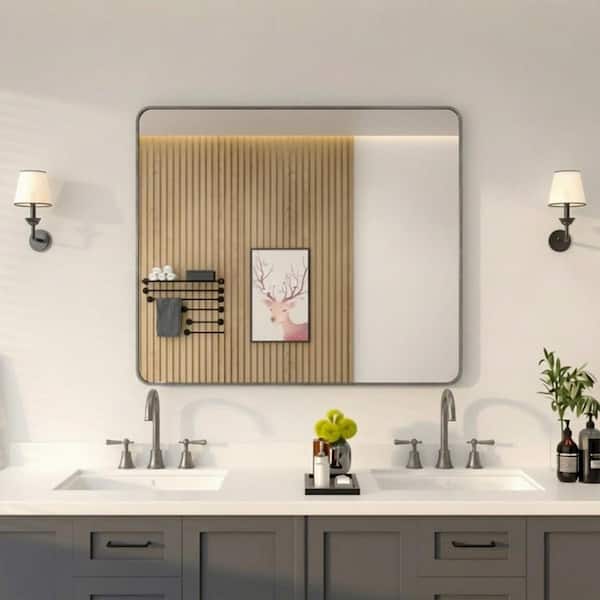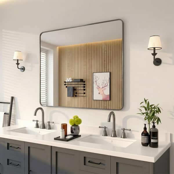 42 in. W x 36 in. H Rectangular Framed Wall Bathroom Vanity Mirror in Gun Grey