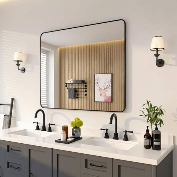 42 in. W x 36 in. H Rectangular Framed Wall Bathroom Vanity Mirror in Matte Black