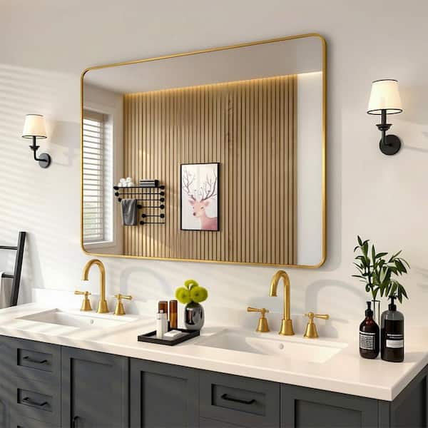 48 in. W x 36 in. H Rectangular Framed Wall Bathroom Vanity Mirror in Brass