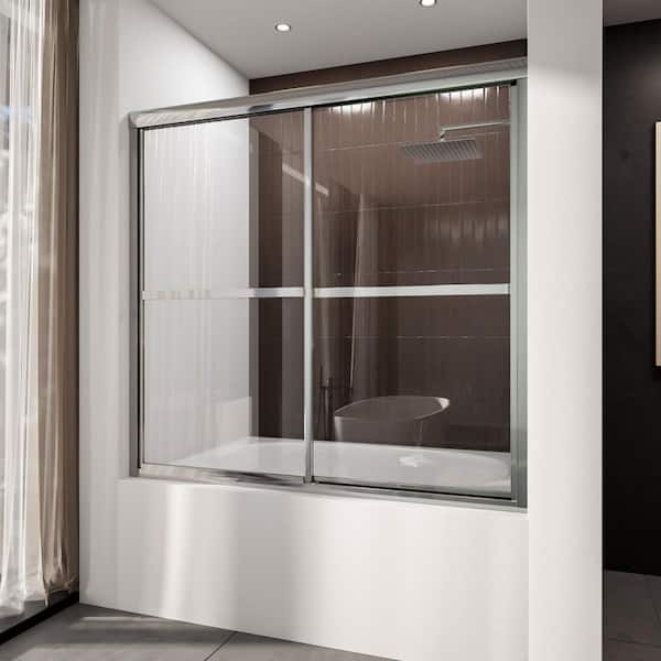 Alvin 59 in. W x 56 in. H Sliding Framed Tub Door in Chrome Finish