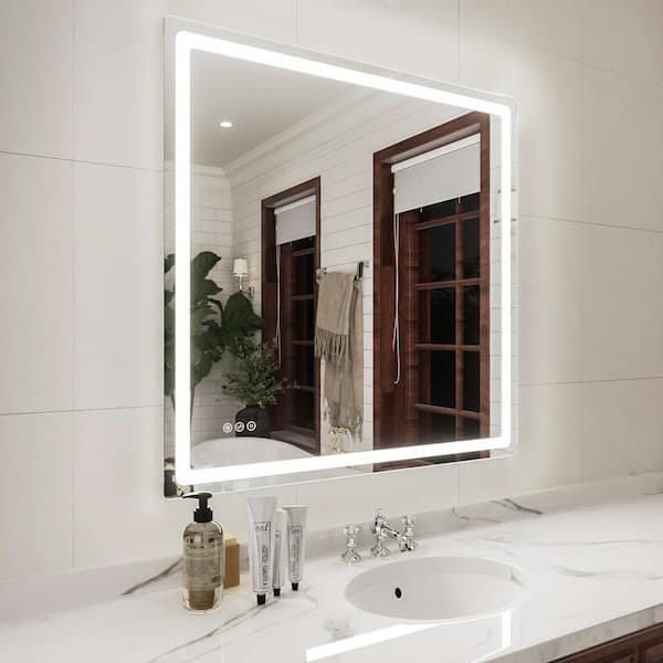 Aurora 36 in. W x 36 in. H Rectangular Frameless LED Wall Bathroom Vanity Mirror in Silver
