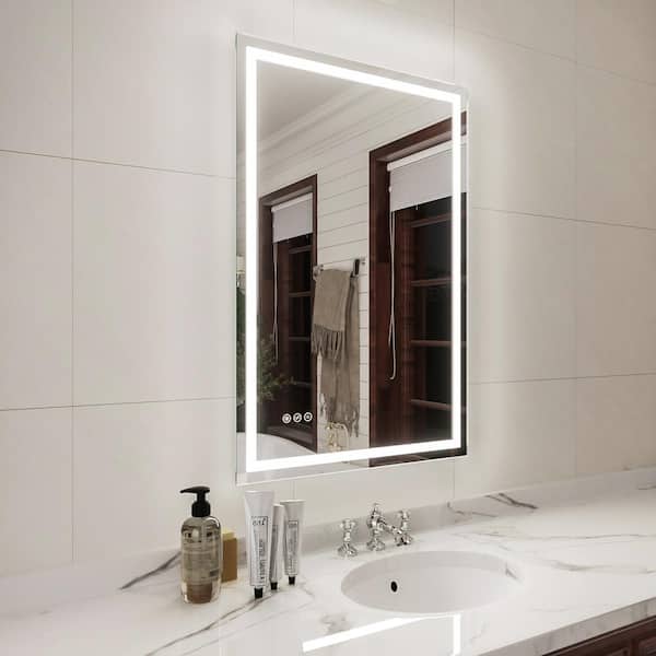 Claro 24 in. W x 36 in. H Rectangular Frameless LED Wall Bathroom Vanity Mirror in Silver