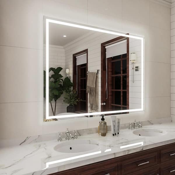 Claro 48 in. W x 36 in. H Rectangular Frameless LED Wall Bathroom Vanity Mirror in Silver