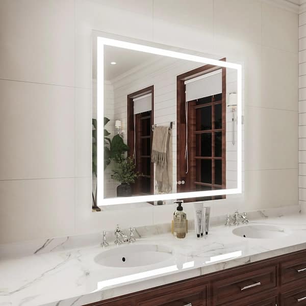 Iris 42 in. W x 36 in. H Rectangular Frameless LED Wall Bathroom Vanity Mirror in Silver