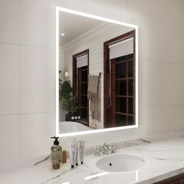 Luna 30 in. W x 36 in. H Rectangular Frameless LED Wall Bathroom Vanity Mirror in Silver