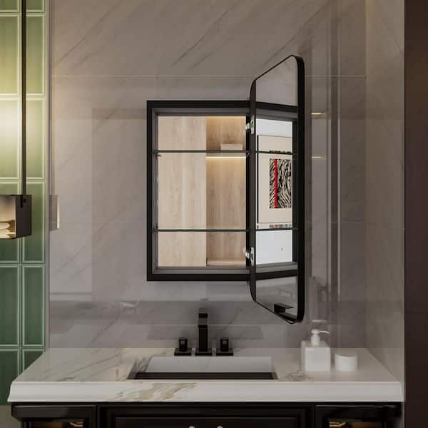 Nebris 15 in. W x 24 in. H Matte Black Rectangular Aluminum Framed Medicine Cabinet with Mirror