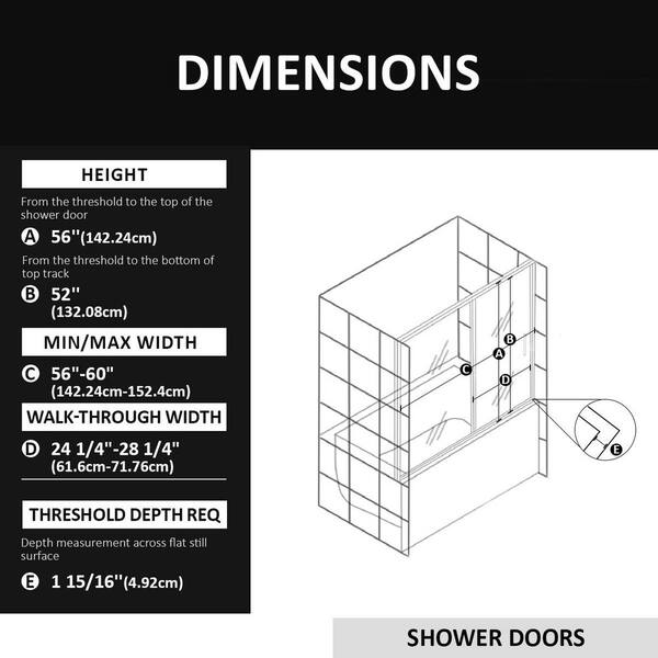 Ruhr 60 in. W x 56 in. H Sliding Semi Frameless Tub Door in Brushed Nickel Finish with Clear Glass
