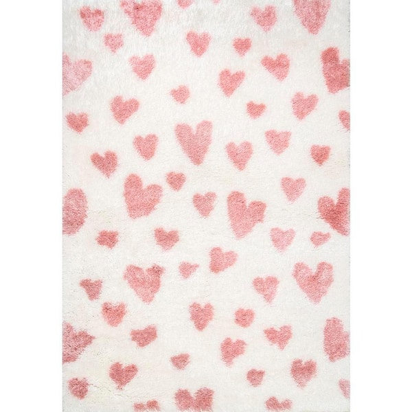 Alison Heart Shag Pink Doormat 3 ft. 2 in. x 5 ft. Area Rug
