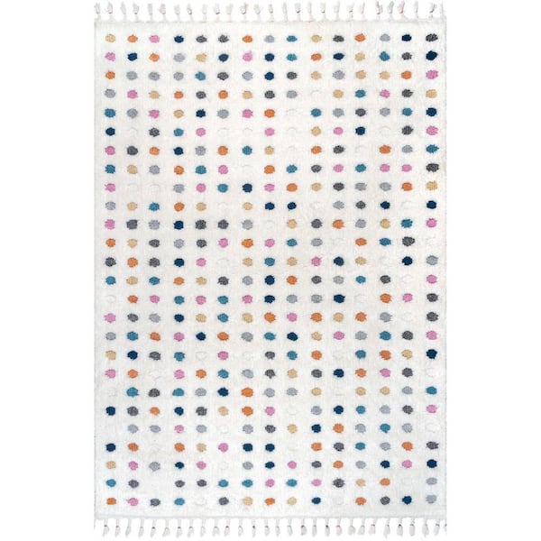 Behati Polka Dot Kids Tasseled Off White 3 ft. x 5 ft. Accent Rug