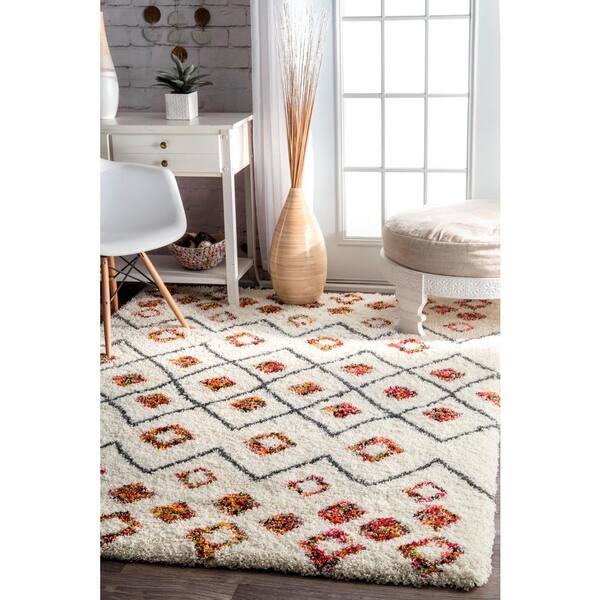 Cicely Bohemian Shag White 4 ft. x 6 ft. Area Rug