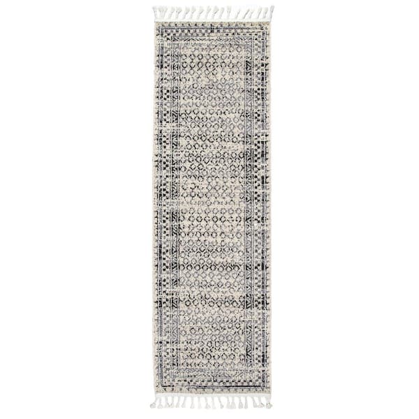 Claudia Diamond Tassel Gray Multi 2 ft. 6 in. x 12 ft. Indoor Runner Rug