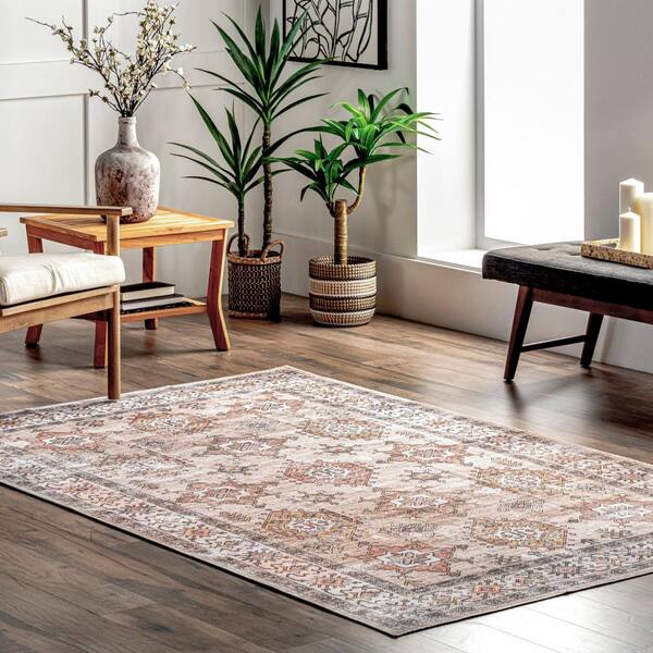 Finley Machine Washable Vintage Distressed Beige Doormat 2 ft. x 3 ft. Accent Rug