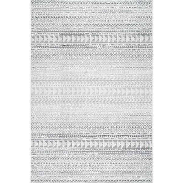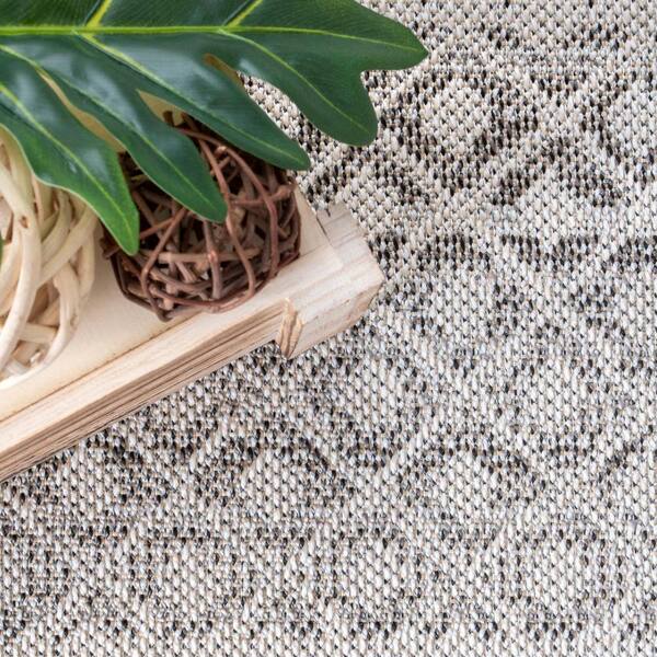 Hana Striped Geometric Beige 6 ft. 7 in. x 9 ft. Indoor/Outdoor Patio Area Rug