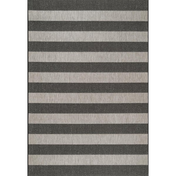 Haylie Chevron Striped Black 8 ft. x 8 ft. Indoor/Outdoor Patio Square Area Rug