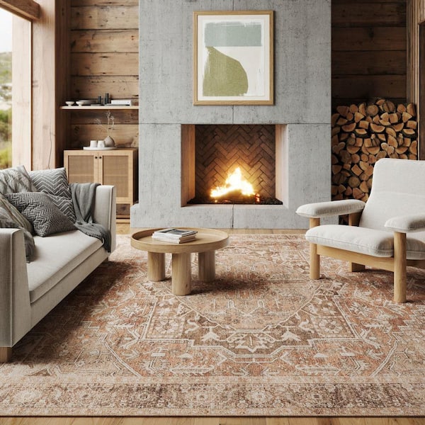 Hillstone Light Brown 6 ft. 7 in. x 9 ft. Traditional Vintage Medallion Area Rug