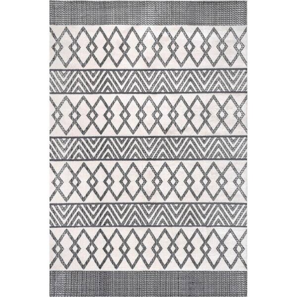 Jenna Banded Geometric Light Gray 9 ft. x 12 ft. Area Rug