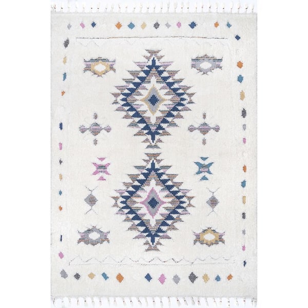 Jocelyn Carved Tribal Shag Blue 7 ft. 10 in. x 10 ft. Indoor Area Rug