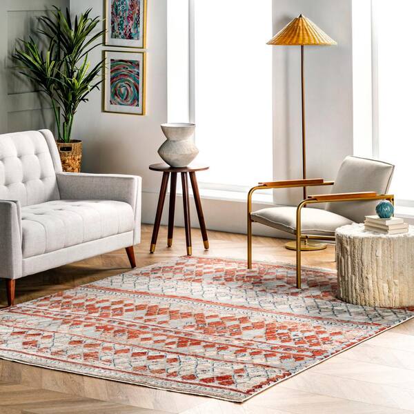 Julianne Distressed Geometric Trellis Rust 8 ft. x 10 ft. Area Rug