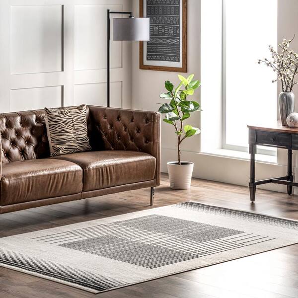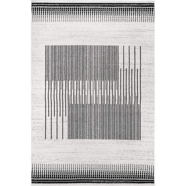 Kacey Abstract Contemporary Stripes Grey 9 ft. x 12 ft. Indoor Area Rug