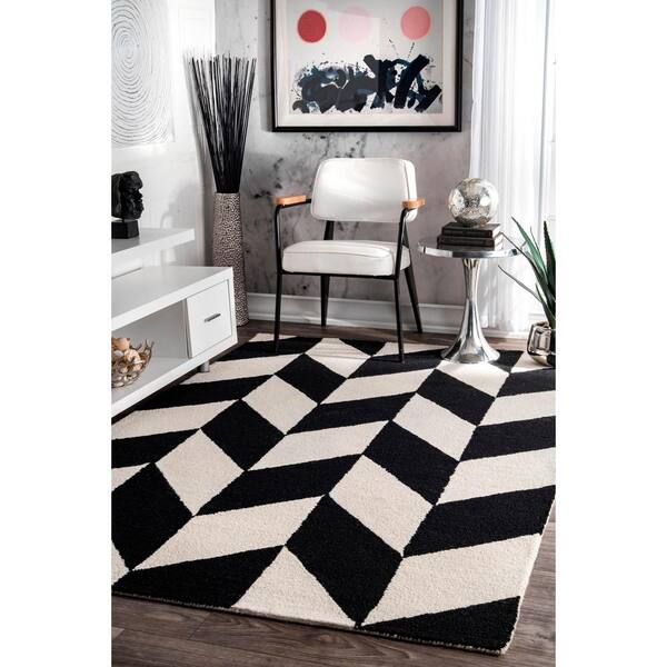 Katte Geometric Black & White 4 ft. x 6 ft. Area Rug