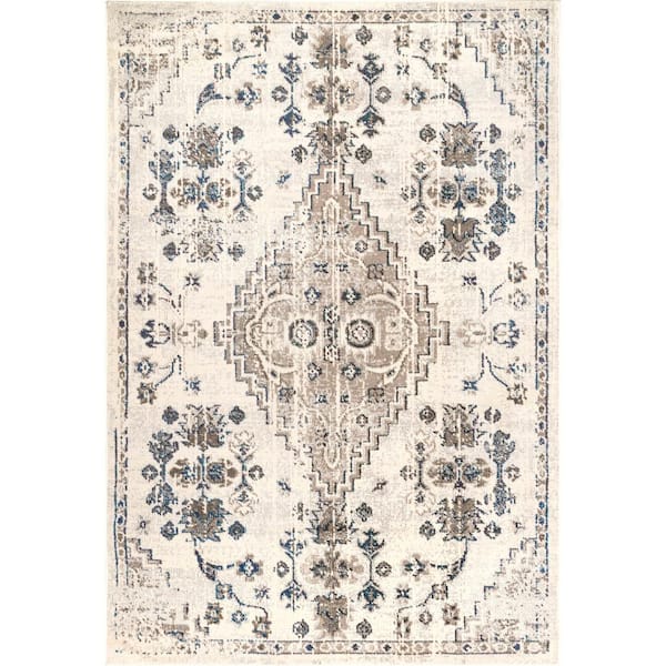 Leahy Bohemian Floral Distressed Gray 5 ft. x 8 ft. Area Rug
