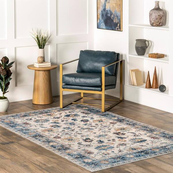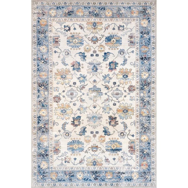 Loria Perisan Spill-Proof Machine Washable Blue 8 ft. x 10 ft. Area Rug