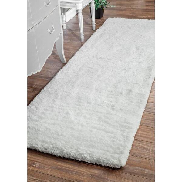 Maginifique Solid Shag Snow 3 ft. x 8 ft. Runner Rug
