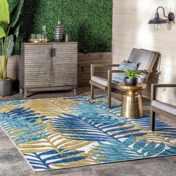 Molly Blue 8 ft. x 10 ft. Textured Tropical Leaves Indoor/Outdoor Patio Area Rug