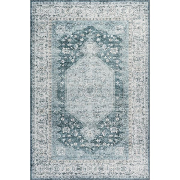 Prairie Green 5 ft. x 8 ft. Medallion Spill Proof Machine Washable Area Rug