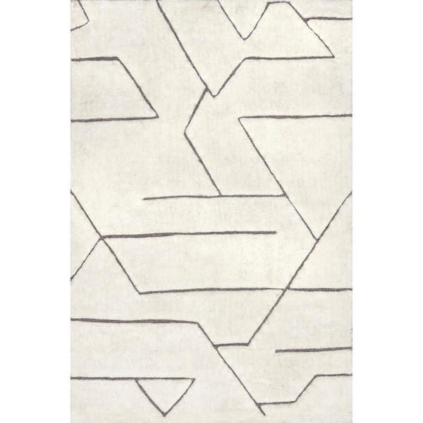 Rasima Geometric High-Low Wool Modern Off-White 5 ft. x 8 ft. Area Rug