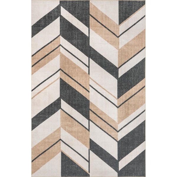 Rita Chevron Machine Washable Area Rug Beige 5' ft. x 8' ft. Area Rug
