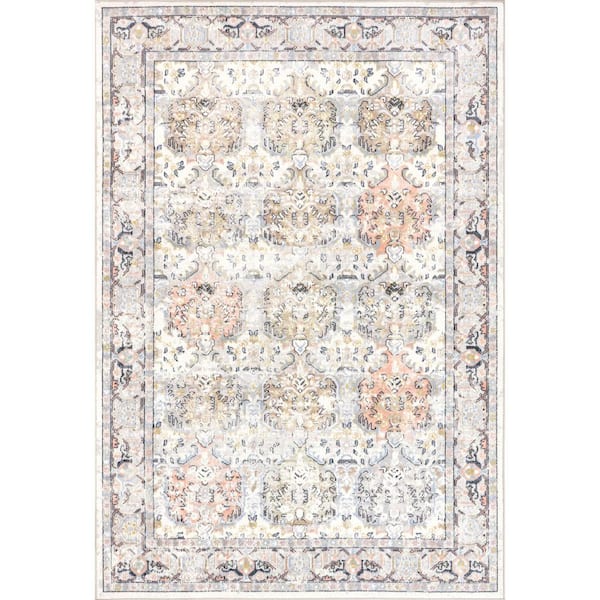 Rue Traditional Bordered Machine Washable Beige 7 ft. 10 in. x 10 ft. Area Rug