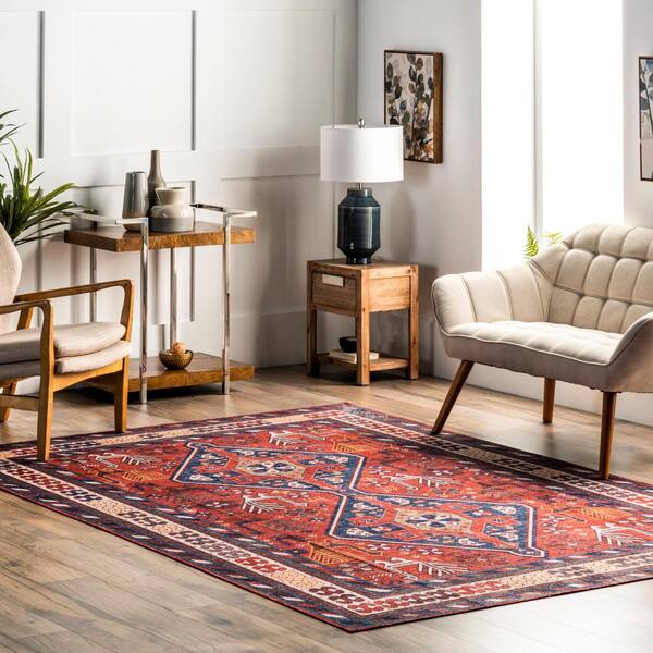 Stella Machine Washable Rust 2 ft. x 3 ft. Traditional Tribal Doormat Accent Rug