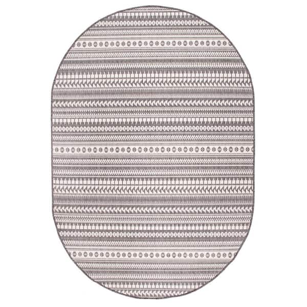 Teofila Gray 5 ft. x 8 ft. Oval Indoor/Outdoor Patio Area Rug