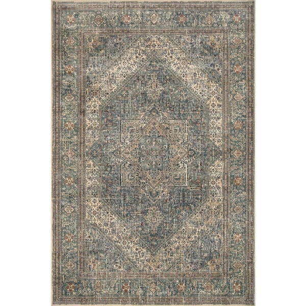 Traditional Carol Medallion Blue 5 ft. x 8 ft. Area Rug