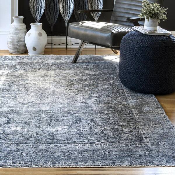 Wanda Distressed Floral Dark Blue 6 ft. x 10 ft. Area Rug