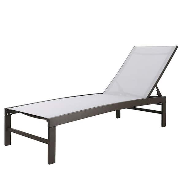 Light Gray 1-Piece Aluminum Outdoor Chaise Lounge with 5-Position Adjustable Backrest