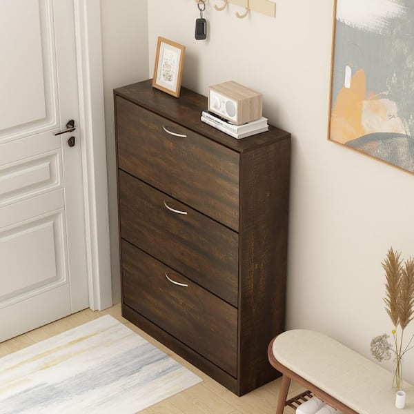47.2 in. H x 31.6 in. W, Brown Wood Shoe Storage Cabinet, 3-Tilt-Out Drawers w/ Removable Dividers, Easy Assembly