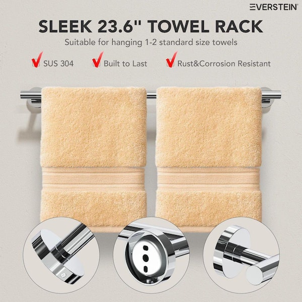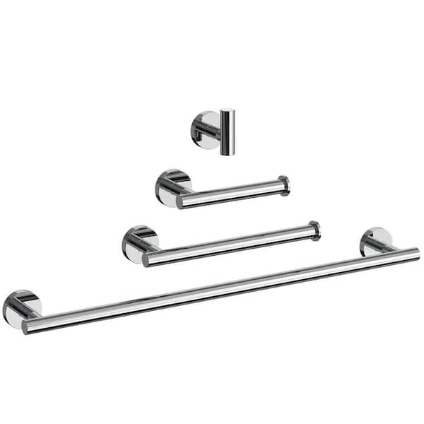 4-Piece Bath Hardware Set with 2-Towel Racks, Toilet Paper Holder and Towel Hook in Stainless Steel Chrome