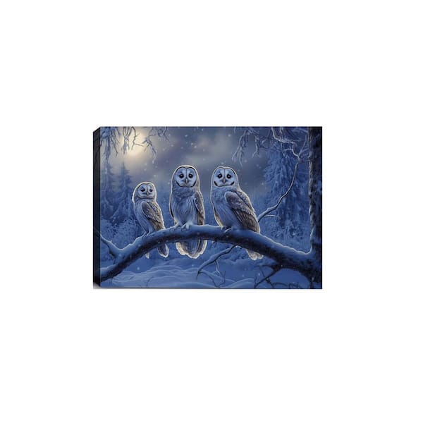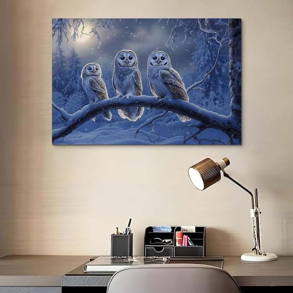Owl Canvas Wall Art, Wildlife Animal Pictures, Winter Forest Theme Poster HD Printing Wall Decor 36x24 inches