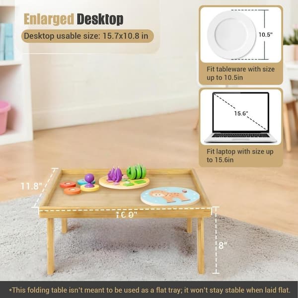 16 in. W x 8 in. H x 11.8 in. D Bamboo Bed Table Tray with Support Bar and Foldable Legs for Bed, Sofa, Laptops, Yellow