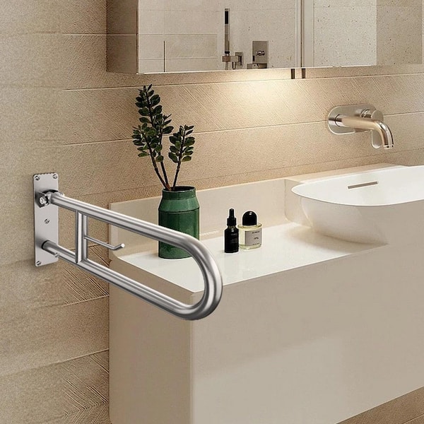 24 in. U-Shaped 304 Stainless Steel Toilet Safety Handrail with Toilet Paper Holder