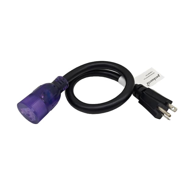 2 ft. 12/3 20 Amp 250-Volt 3-Prong Indoor/Outdoor NEMA 6-20 Extension Cord with Lighted End, Black, UL Listed