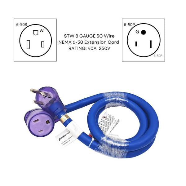 5 ft. 8/3 50 Amp 250-Volt Outdoor NEMA 6-50 Welder Extension Cord with Lighted End, UL Listed, Blue